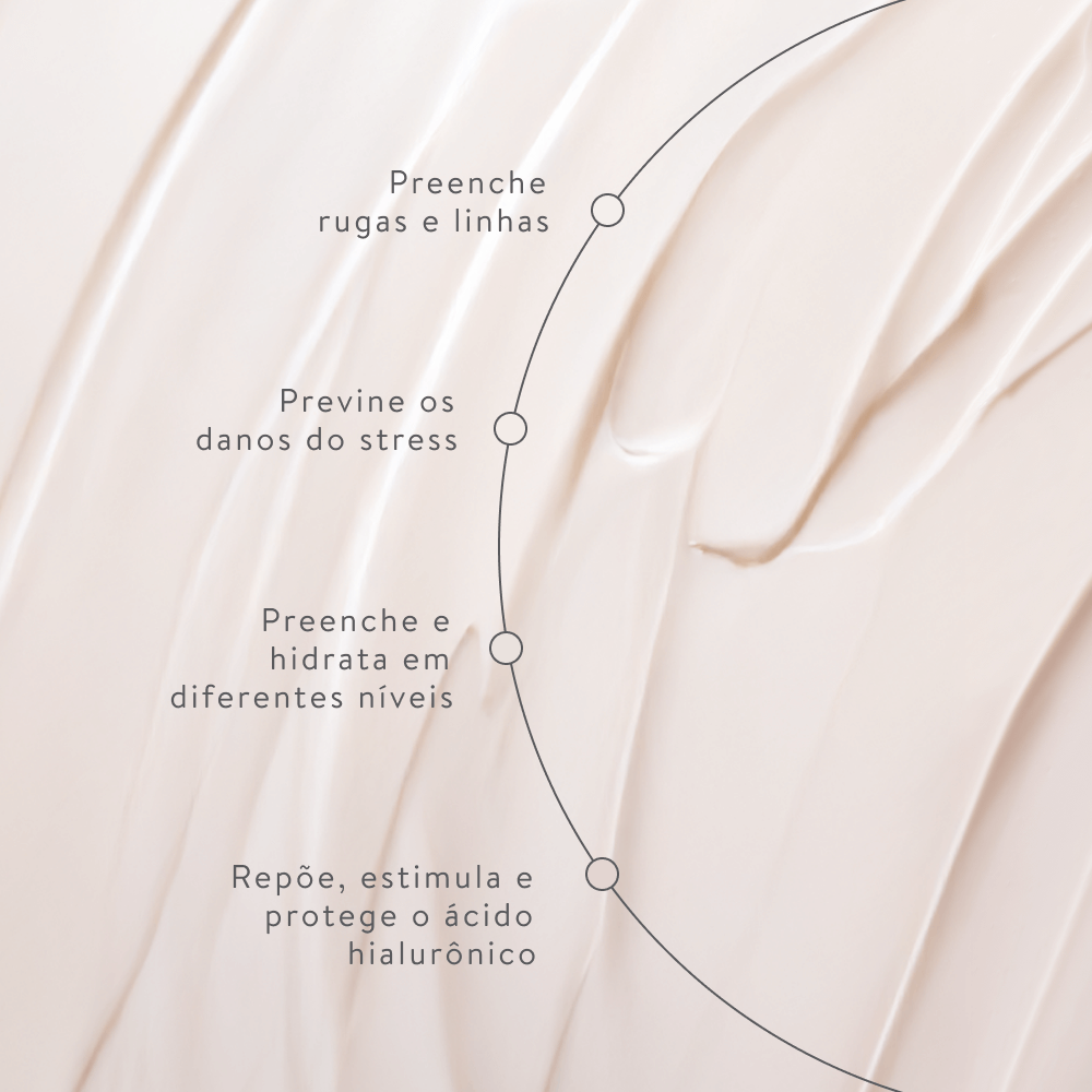 ÁGUA, DECAMETILCICLOPENTASILOXANO, GLICEROL, TRIGLICÉRIDE CÁPRICO/CAPRÍLICO, PENTILENOGLICOL, UNDECANO, DIMETICONA, TRIDECANO, TRIGLICÉRIDES C10-18, FENILTRIMETICONE, POLIGLUTAMATO DE SÓDIO, FENOXIETANOL, POLÍMERO DE DIMETICONA-VINIL DIMETICONA, TAURATO DE POPLIACRILOIL DIMETILAMÔNIO, MONOESTEARATO DE GLICERILA, POLIACRILATO DE SÓDIO, ESTEAROIL GLUTAMATO DE SÓDIO, DIMETICONOL, BENTONITA, ÁLCOOL CETÍLICO, POLIACRILAMIDA, ESTEARATO DE POLIETILENOGLICOL 75, ACETIL GLUCOSAMINA, DIBEHENATO DE GLICERILA, C13-14 ISOPARAFINA, ACETATO DE TOCOFEROL, TRIBEHENINA, BUTILENOGLICOL, CETETE-20, ÉTER DE MACROGOL ESTEARÍLICO 20, PROPILENOGLICOL, BROMETO DE CETRIMÔNIO, BEHENATO DE GLICERILA, HIALURONATO DE SÓDIO, LAUROMACROGOL 350, CORANTE CI 77019/BRANCO, DIÓXIDO DE SILÍCIO, GLICONATO DE SÓDIO, EXTRATO DE FOLHAS DE GINKGO BILOBA, ÁLCOOL ETÍLICO, ÁLCOOL BUTÍLICO, POLÍMERO CRUZADO DE HIALURONATO DE SÓDIO, CORANTE CI 77891/BRANCO, TRIFLUOROACETATO DE TETRADDECILA AMINOBUTIROILVALIAMINOBUTÍRICO UREIA, ÁCIDO HIALURÔNICO HIDROLISADO, ÁCIDO HIALURÔNICO, CORANTE CI 77491/VERMELHO, SILANETRIOL, ÁCIDO CÍTRICO, ÁCIDO SÓRBICO, SORBATO DE POTÁSSIO, CLORETO DE MAGNÉSIO, TOCOFEROL, BENZOATO DE SÓDIO, EDETATO DE SÓDIO, ÓLEO DE SEMENTE DE GIRASSOL. AD 7870 (506723)