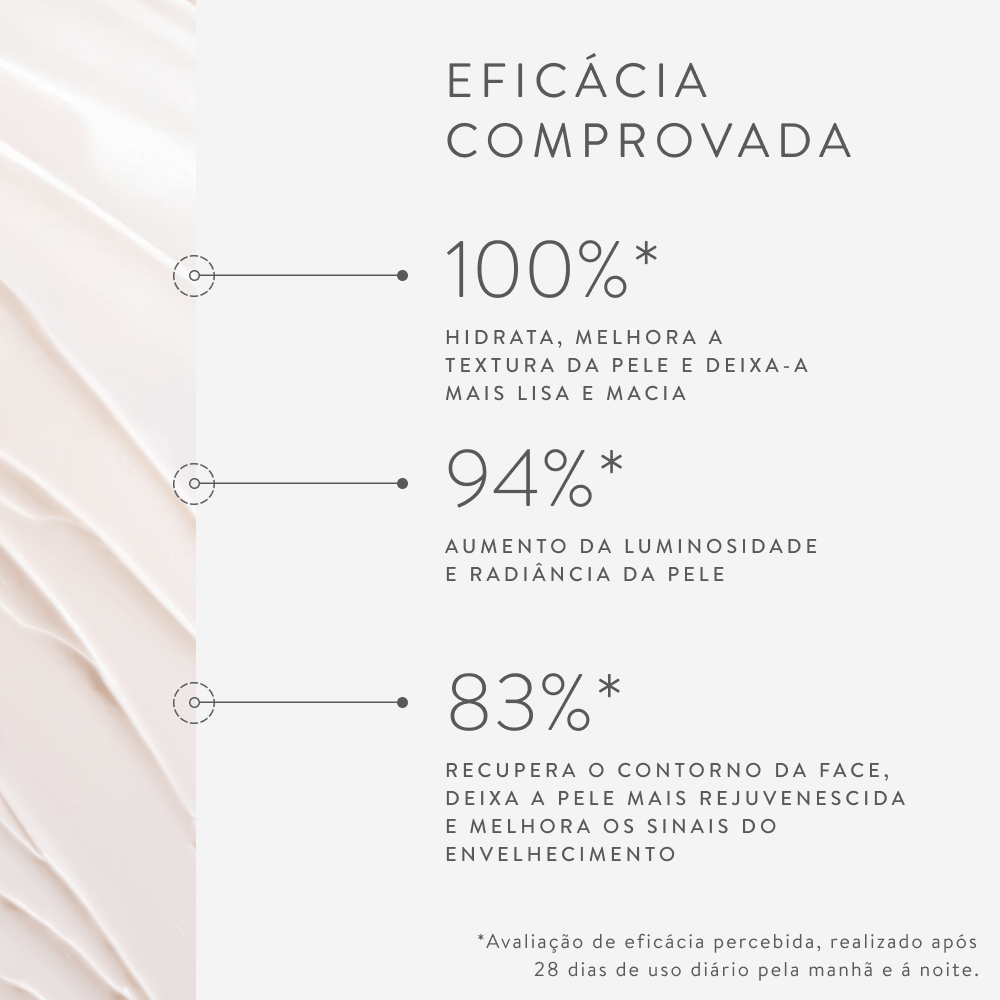 Aplicar o produto sobre a pele e seca pela manhã e à noite. Massageie até completa absorção. Durante o dia utilizar protetor solar.Eficácia Comprovada - PDP