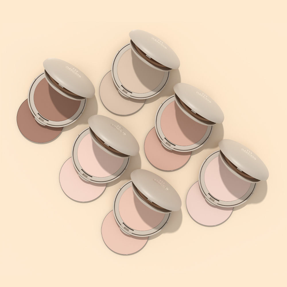 Translúcido: DIÓXIDO DE TITÂNIO, TALCO, ÓXIDO DE ZINCO, COPOLÍMERO DE ÁCIDO METACRÍLICO/ACRILATO DE ETILA, ESTEARATO DE MAGNÉSIO, METACRILATO DE POLIMETILO, ESTEARATO DE OCTILA, TRIGLICÉRIDE CÁPRICO/CAPRÍLICO, DIÓXIDO DE SILÍCIO, ALGINATO DE SÓDIO, PERFLUOROOCTIL TRIETOXISILANO, HIDRÓXIDO DE ALUMÍNIO, FENOXIETANOL, TRIETOXICAPRILISILANO, BUTIL-HIDROXITOLUENO, ACETATO DE TOCOFEROL, CORANTE CI 77492/AMARELO, CORANTE CI 77491/VERMELHO, CORANTE CI 77499/ÓXIDO DE FERRO PRETO,FRAGRÂNCIA, AMILCINAMALDEÍDO, CUMARINA, ALFA-ISOMETILIONONA, LINALOOL, CITRONELOL, D-LIMONENO, PALMITATO DE OCTILA, TRIHIDROXIESTEARINA, HIALURONATO DE SÓDIO, PÓ DA RAIZ DE KONJAC.